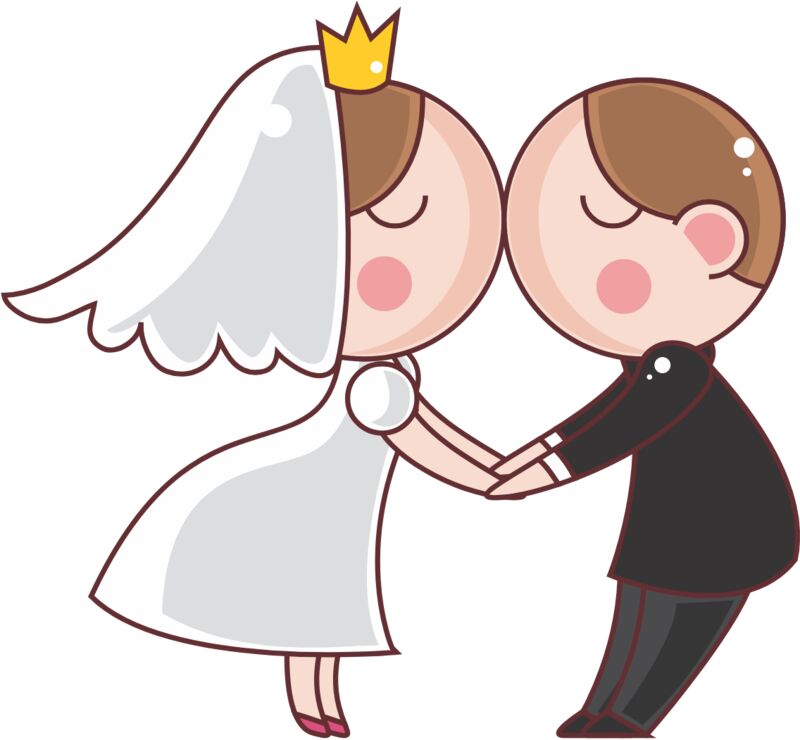 Cartoon Wedding Groom Bride Kiss 2